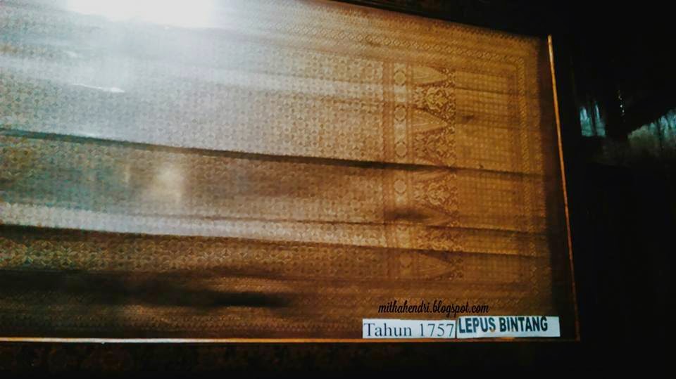 Masuk keareal museum, mata kita disuguhkan berbagai macam benda peninggalan orang palembang tempo dulu, Tempat tidur dengan seprai songket, meja rias dengan taplak songket, semua serba songket.